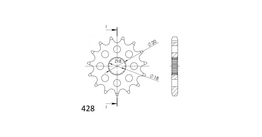 Pevnější zuby = vyšší životnost řetězové sady až o 10%. Kolečko 15z, řetěz 428.