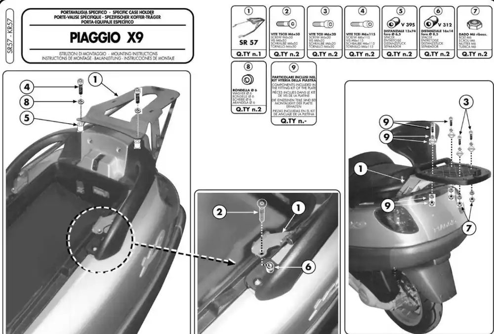KAPPA zadní nosič kufru PIAGGIO X9 125-180-250 (00-02), X9 200-250-500 EVOLUTION (03-08), X9 500 (01-02) ( bez plotny ) Akce