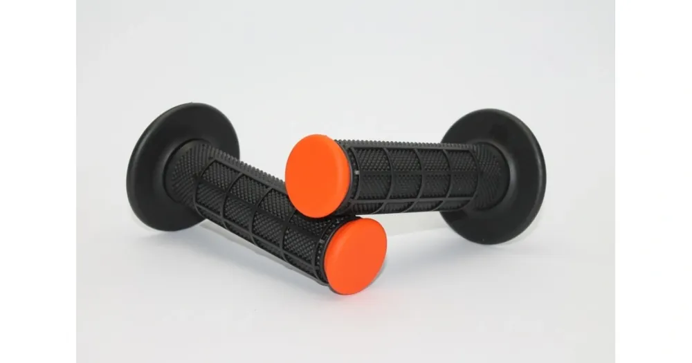 Dvoubarevné rukojeti pro motokros a enduro, černá-oranžová, levá+pravá, half-waffle