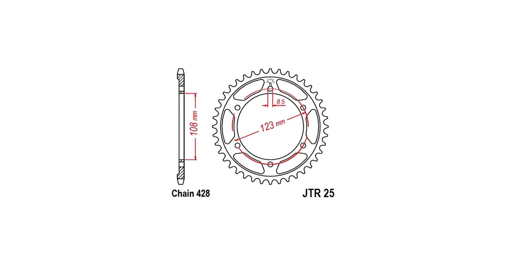 Řetězová rozeta JT JTR 25-60 60 zubů, 428 JTR25.60 727.25-60 Nejprodávanější