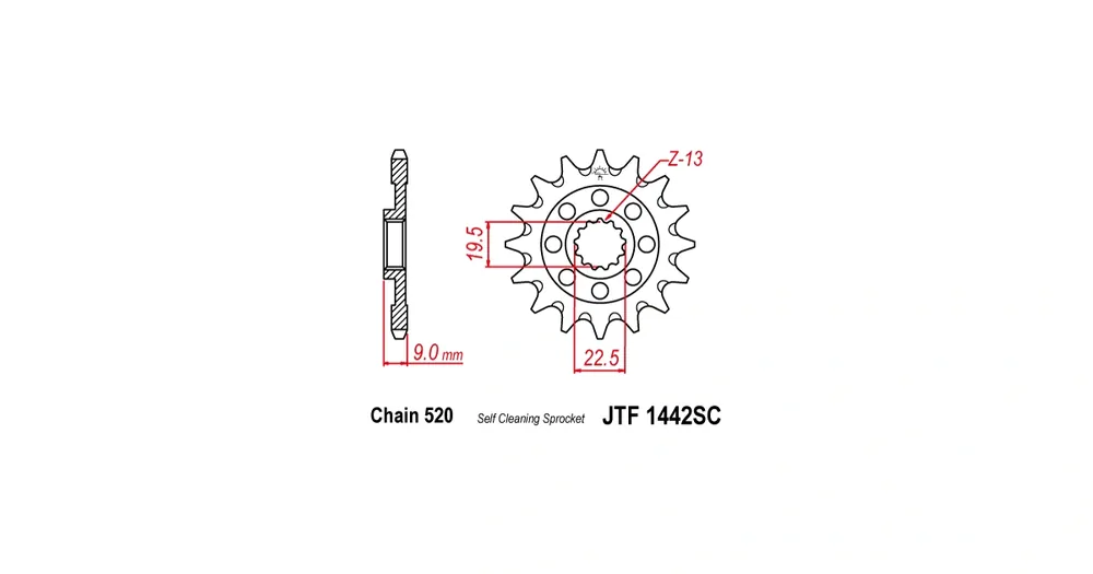 Řetězové kolečko JT JTF 1442-14SC 14 zubů, 520 Samočistící, Nízká hmotnost JTF1442.14SC 726.1442-14 Exkluzivní