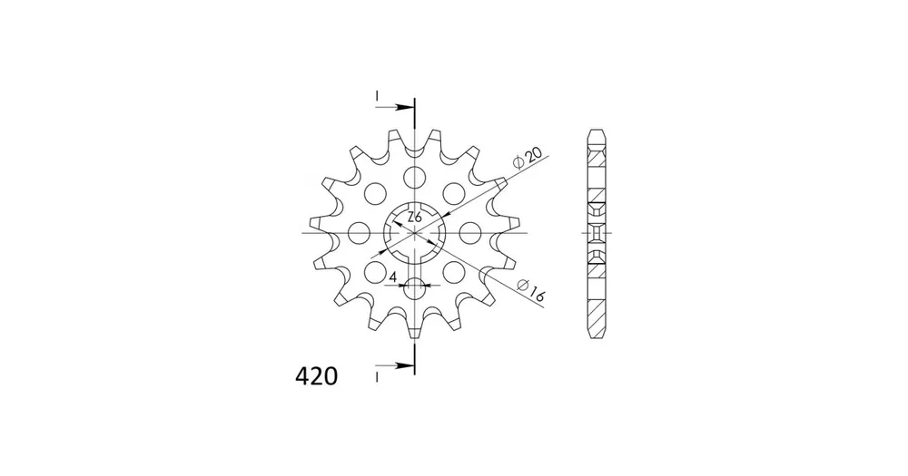 Pevnější zuby = vyšší životnost řetězové sady až o 10%. Kolečko 15z, řetěz 420.