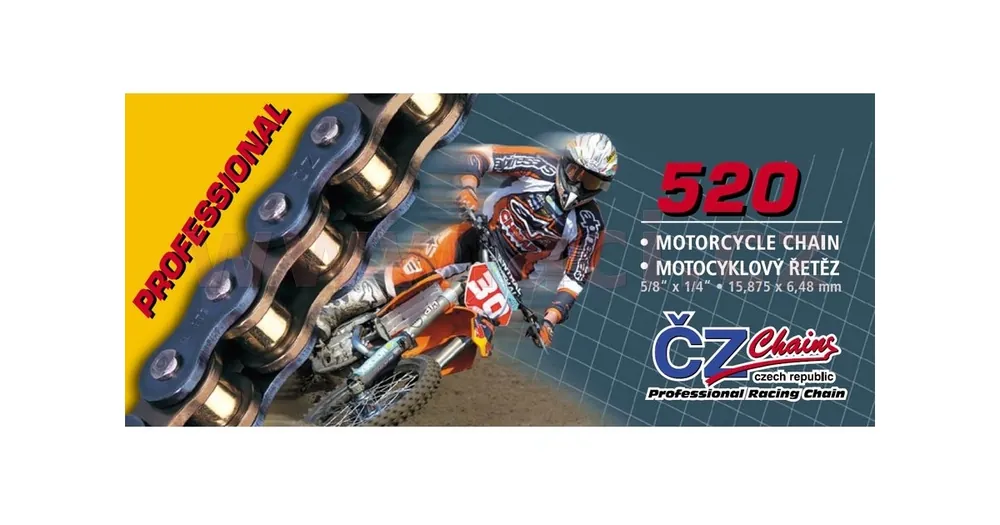 Velkoobchod Řetěz 520M, ČZ – ČR (barva černá, 100 článků vč. rozpojovací spojky CLIP) M252-07-100B